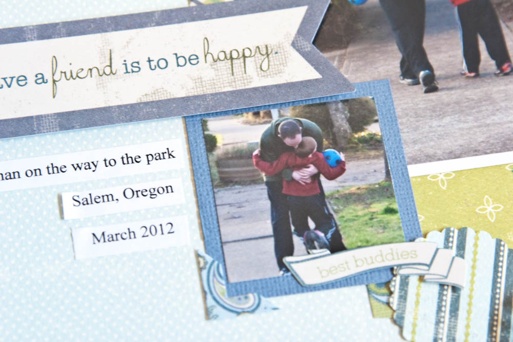 14. Put foam squares behind title sticker and add any other stickers you would like to the page.
