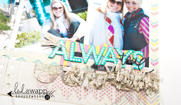 One of the things I love about Heidi Swapp's products is that they go with everything. Boy, girl, travel, friends, holidays - you name it and it works. With this double page spread, I wanted to add more photos in the middle with an insert along with the new Serendipity Fotostack Book. They are smaller than the original Fotostack, but cute with a diecut in the front for a little peek-a-boo page.